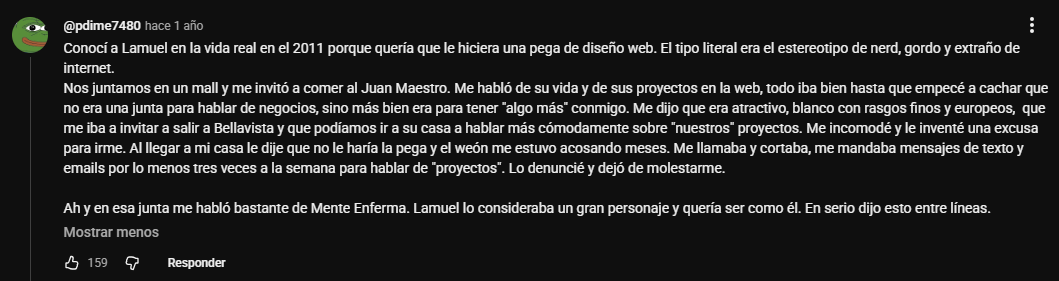 Lamuel no era un estratega ni un operador frío. Era una persona con depresión endógena, vida social limitada e identidad fuertemente ligada al sitio. Cuando ese mundo colapsó, no quedó piso. No hizo falta una condena: bastaron el miedo, la incertidumbre, la vergüenza pública y la imposibilidad de explicarse. El suicidio no fue heroico ni ideológico, sino una salida desesperada ante un futuro percibido como inhabitable.