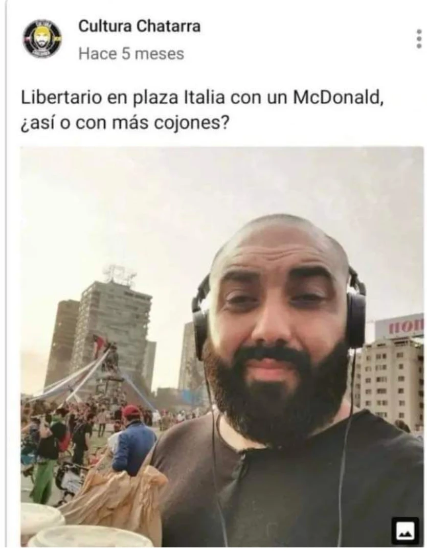>>549002 Esto se lo he dicho a la sanguchita pero no está de sobra repetir que Chile no es Estados Unidos. Allá la mayoría de cristianos son canutos y es como si el pastor Soto fuese lo normal, entonces salir del closet frente a tu familia o andar en la calle es distinto que acá. Fijate como ni siquiera Milei peleó contra las trans más allá del típico saludo a la bandera cuestionando el género. No creo que Kast sea muy distinto en ese sentido. El pueblo chileno se rió con la Asskha Sumatra que es un transformista histérico y con mayor razón empatizarán con una trans piola. mientras tanto en las calles del Chile de Kast: