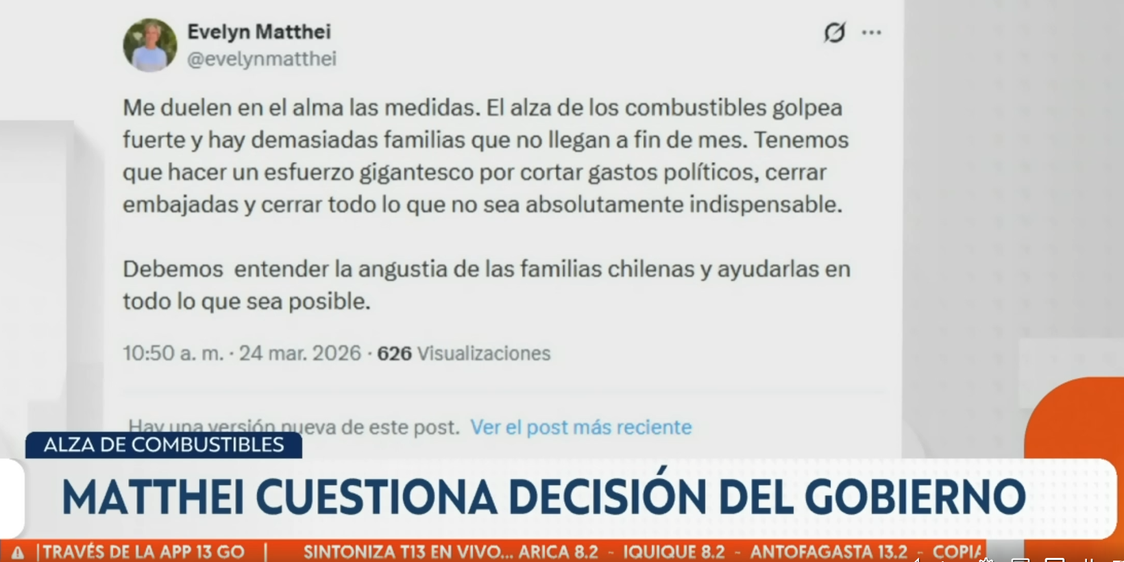 MATTHEI CUESTIONA DECISIÓN DEL GOBIERNO