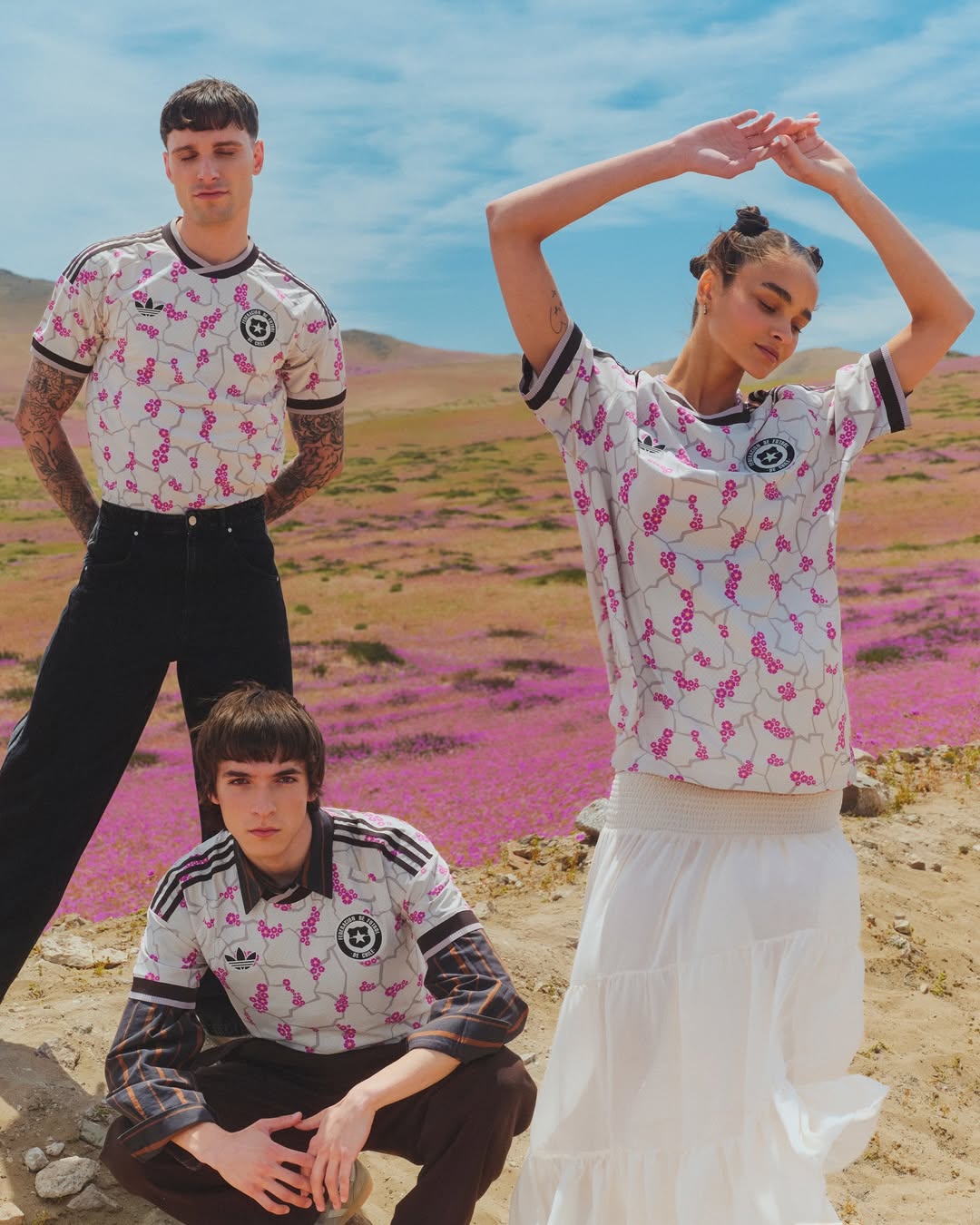 Estuve investigando y aunque pensé que trataba de representar esa parte del himno de "y ese campo de flores bordaaaAdo", pero no, es el desierto florido, lo cual como concepto me parece bakán, peeeeero, fui a ver la hueá de Adidas a ig y hay un literal trapito vistiendo la polera con la tremenda manzana de adán, puta la hueá asco, se supone que con Kast se acababa esta mierda weka.