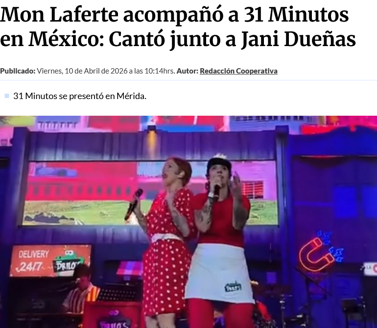 Mon Laferte acompañó a 31 Minutos en México: Cantó junto a Jani Dueñas jamas habia visto tanta caca junta