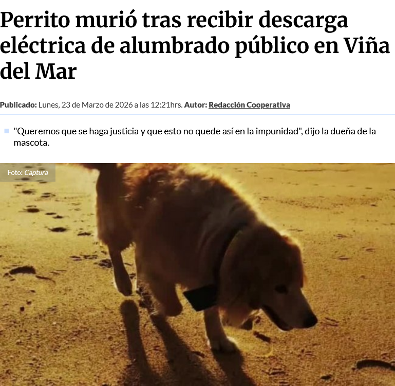 Perrito murió tras recibir descarga eléctrica de alumbrado público en Viña del Mar nouuuuuuuu el perritu