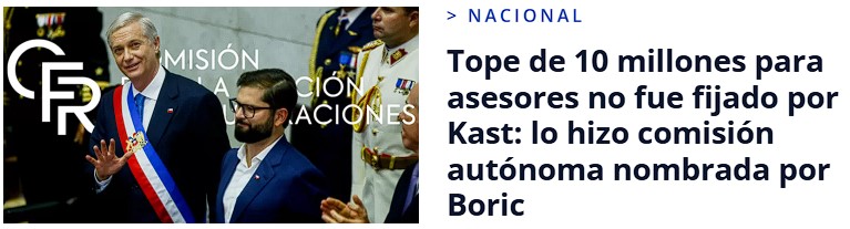 >>548659 >Dispuesta por mandato Constitucional, la Comisión para la Fijación de Remuneraciones es un organismo autónomo O sea, no fue Boric.