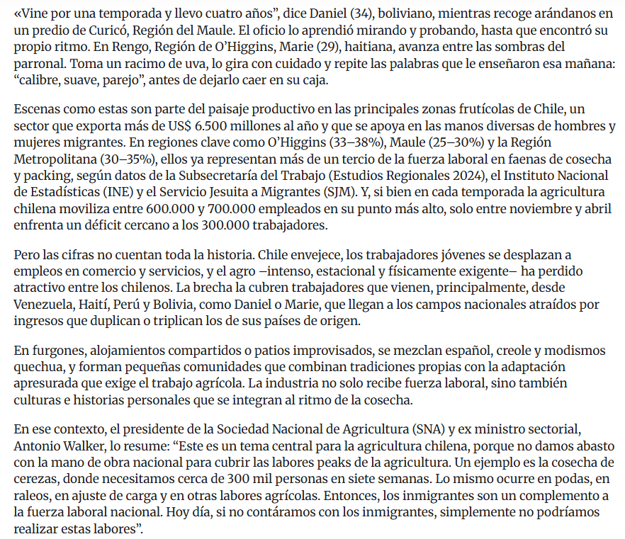A mi este verano me estaban saliendo puros videos de temporeros haciendo cagar los árboles de cereza porque según ellos pagan tan poco por la bandeja, ni siquiera la jornada, que es más rentable cortar las ramas a lo loco y llenar rápido las bandejas, aun cuando esto cause que el próximo año baje la producción.