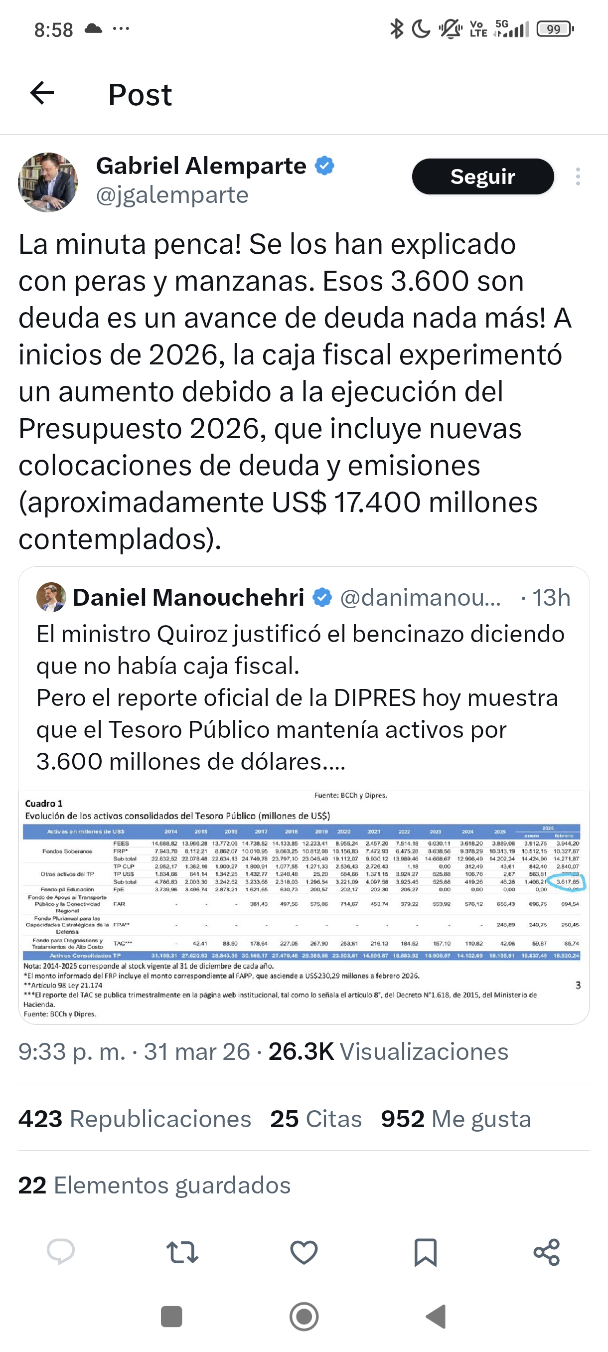 Esas platas son el saldo que quedó de las deudas internacionales adquiridas que se metió el desgobierno merluciano sin preguntar a nadie, después de haber despilfarrado platas en el primer mamarracho, las fundaciones ladronas, platas que regalaron a la ONU, a los indios terroristas, a los municipios ladrones zurdos y la plata que se robaron para si mismos, zurdos CSM. No es suficiente para gobernar, tampoco para rellenar el MEPCO, lo peor es plata que se debe devolver a los prestamistas internacionales más intereses. Quieren hacer pasar esta estafa como "ganancias" que nunca fueron. Zurdosanales culiaos VERDADEROS ROBALO HDP. Espérense a que terminen las auditorias donde va a quedar descubiertos y presos.