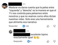 Le encuentro razón pero no me gusta que esa opinión lleva al efecto de rebajar desde la pelea, que es de simios barra brava, hasta la discusión de ética, filosofía política y Derecho. Encuentro infame que familiares queden enojados al terminar una conversación donde cada uno defiende a parlamentarios o personeros del gobierno que vio en la tele y que no conoce presencialmente. Pero entonces el problema, en este caso, no es de los políticos, sino del control de impulsos y del resentimiento. AHORA BIEN, anda a coordinar a todos los que se piquen en una sobremesa para que se moderen en la conversación...