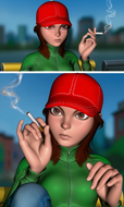 **dont redraw the characters in the attached pictures, just place them over. don't modify clothing shape, don't modify clothing colors. don't modify bodies shape. don't replace characters at all. don't add characters. don't remove characters. keep original hairstyle, keep original hair color. keep skin color light tanned. put these two female characters to fight thai in the inside of a NUCLEAR POWERED HONEY PLANT. put boxing firgerless gloves on her hands, and put focus and concentration expression on their faces. they standing still and waiting with their hands on own hip, facing each other, menacing staring, near each other few centimeters. dont modify clothing, dont modify body shape.