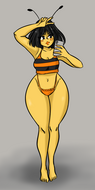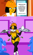 **dont redraw the characters in the attached pictures, just place them over. don't modify clothing shape, don't modify clothing colors. don't modify bodies shape. don't replace characters at all. don't add characters. don't remove characters. keep original hairstyle, keep original hair color. keep skin color light tanned. put these two female characters to fight thai in the inside of a NUCLEAR POWERED HONEY PLANT. put boxing firgerless gloves on her hands, and put focus and concentration expression on their faces. they standing still and waiting with their hands on own hip, facing each other, menacing staring, near each other few centimeters. dont modify clothing, dont modify body shape.