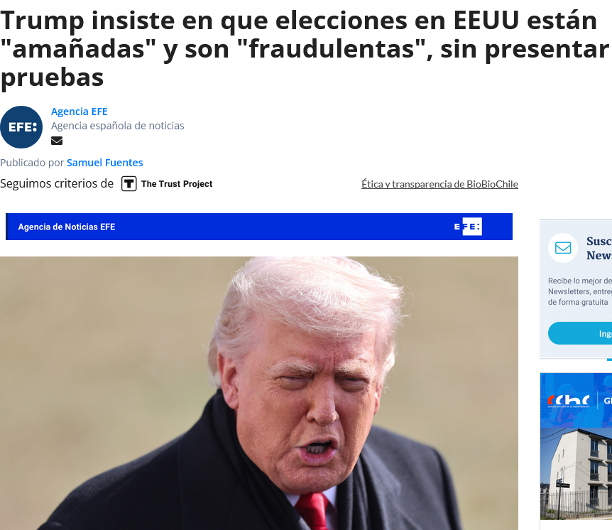 Trump insiste en que elecciones en EEUU están "amañadas" y son "fraudulentas", sin presentar pruebas por algo lo dice