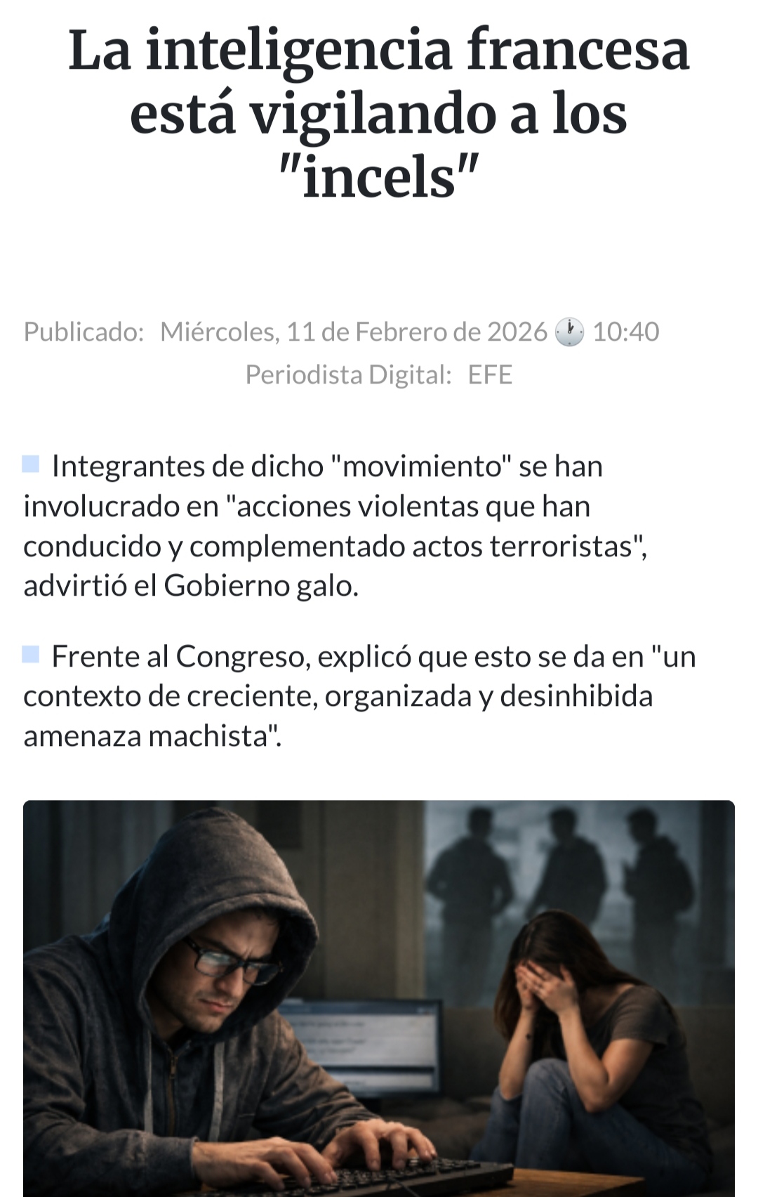 La inteligencia francesa está vigilando a los "incels"