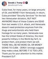 "¡Ya no más!": Trump advierte a Cuba que recibirá "cero" petróleo y dinero de Venezuela
