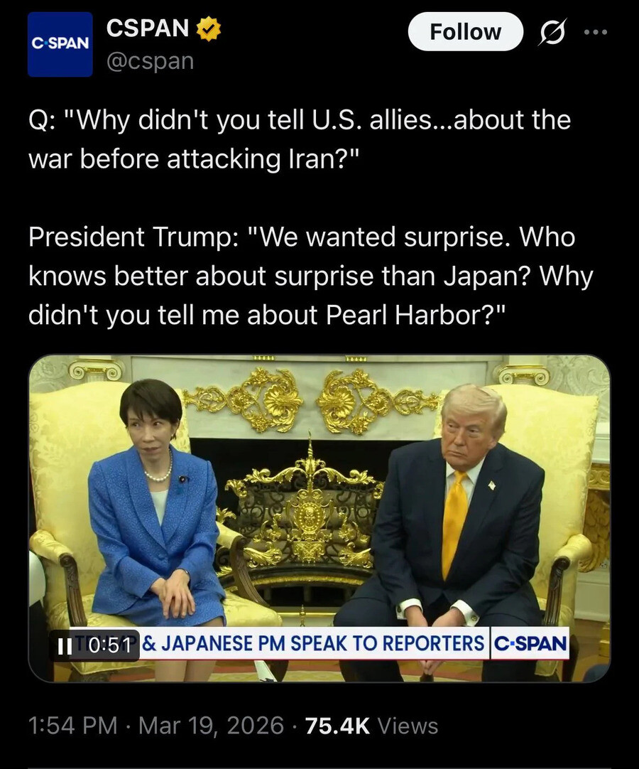 Trump hizo broma sobre Pearl Harbor a primera ministra japonesa para explicar ataque a Irán