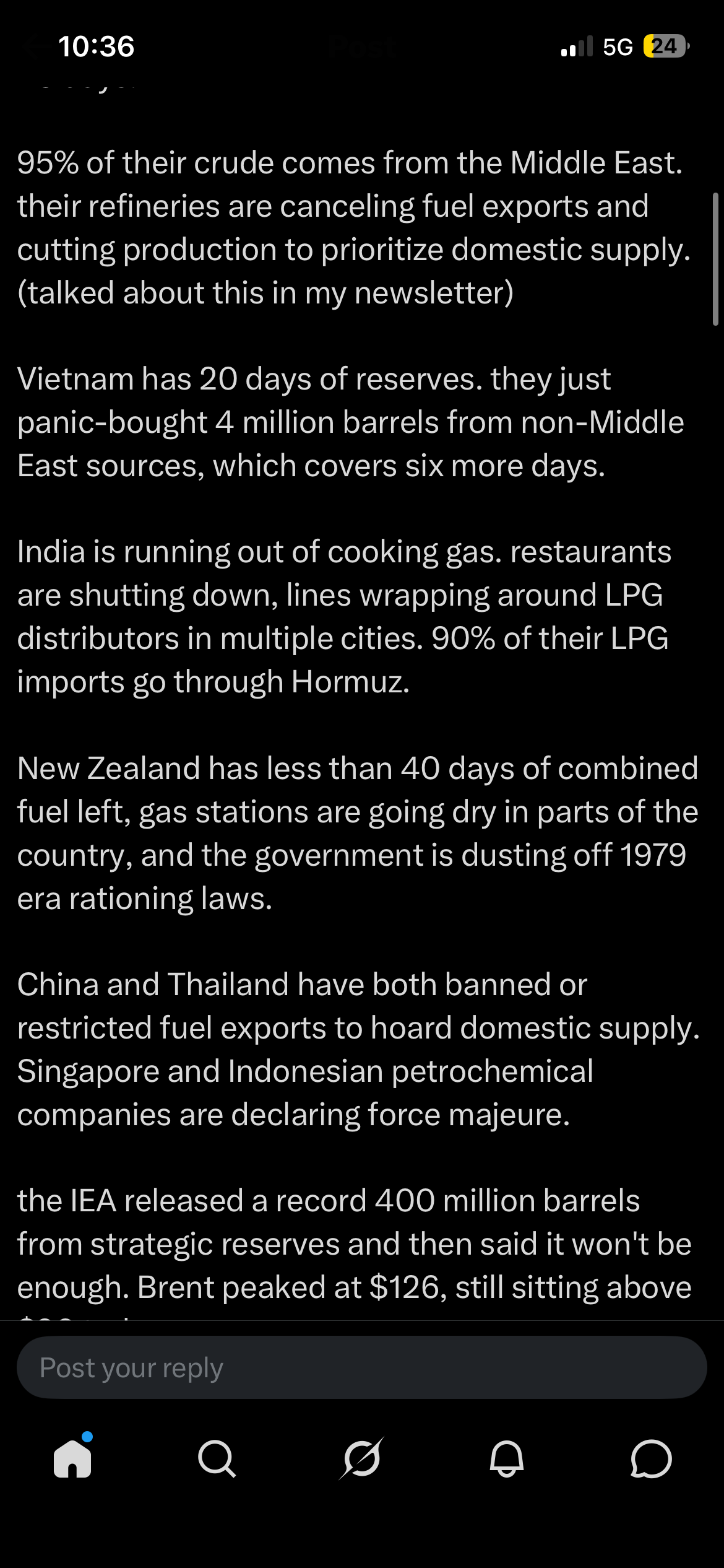 La subida de precios que está teniendo el combustible le pegará aún más fuerte a los países que no producen petróleo para abastecimiento interno y a los que necesitan el estrecho para exportar su petróleo.