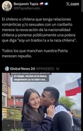 Pero me di cuenta que ya es una batalla perdida, este pais no merece que nadie lo defienda de nada ya que a la mayoria de los hombres chilenos les encanta imitar a los caribeños, escuchan regeton, se hacen cortes de pelo caribeños, se visten como caribeños, hablan e imitan comportamiento de caribeños. A la mujer Chilena tambien le encantan los negros y caribeños, incluso a las cuicas y "niñas de bien", facilmente tendrian hijos con un negro ordinario y mal oliente.