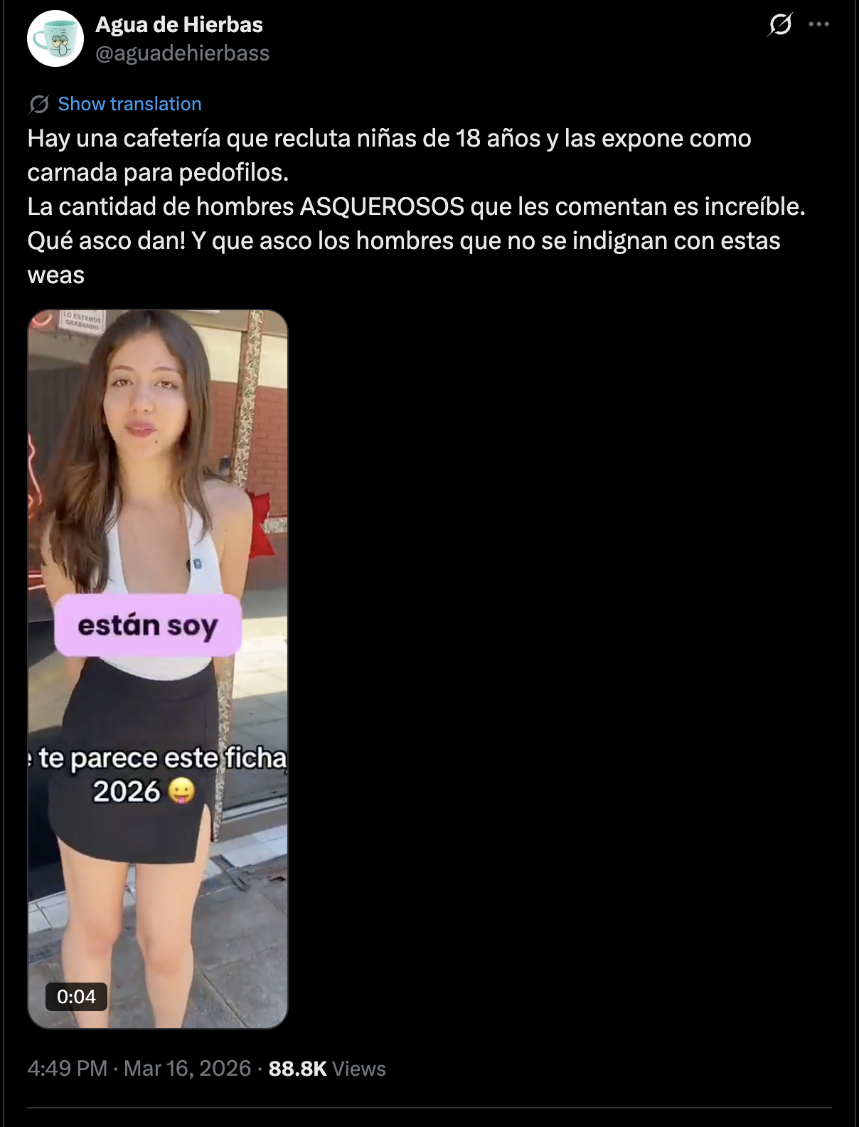 A todo esto, es un beneficio de ser chileno porque en países escandinavos y africanos, las minas a los catorce ya parecen de veinte y tantos. Acá pueden tener veintidós y aún parecer de dieciséis por genética.