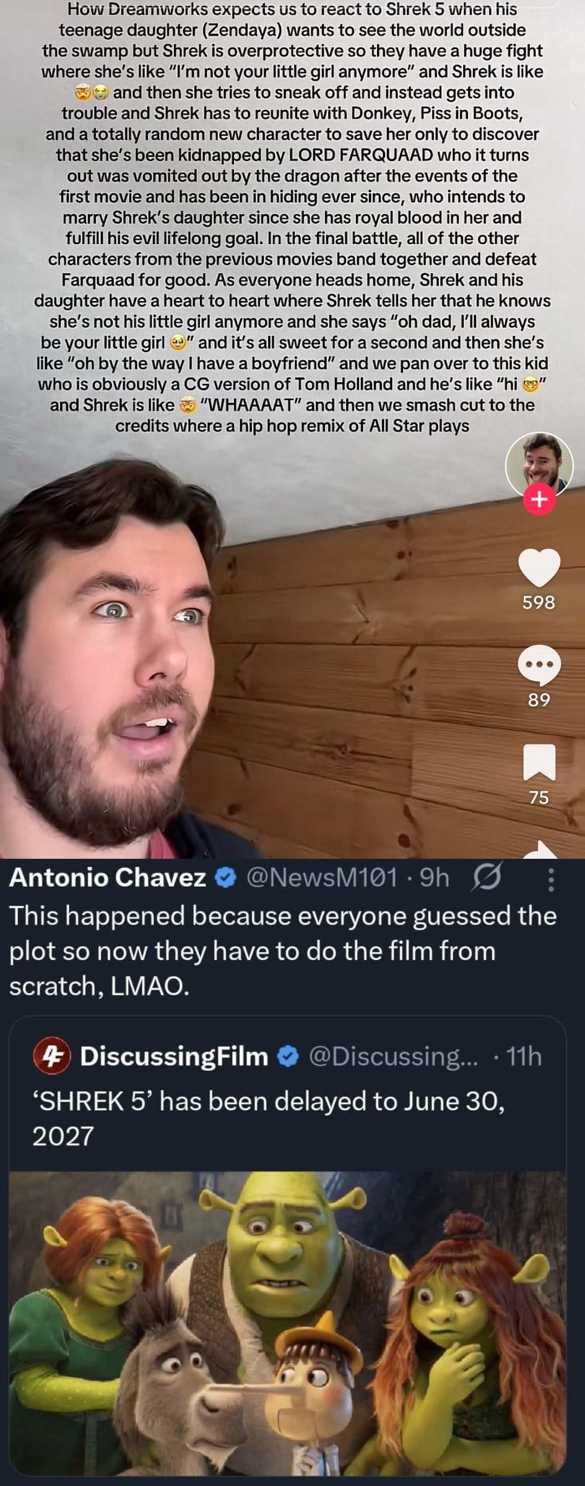 Tengo dos teorías: 1. La hija de Shrek se puso lentes de contacto. 2. La nueva hija de Shrek es en realidad uno de sus hijos que se hizo TRANS 🏳️‍⚧️