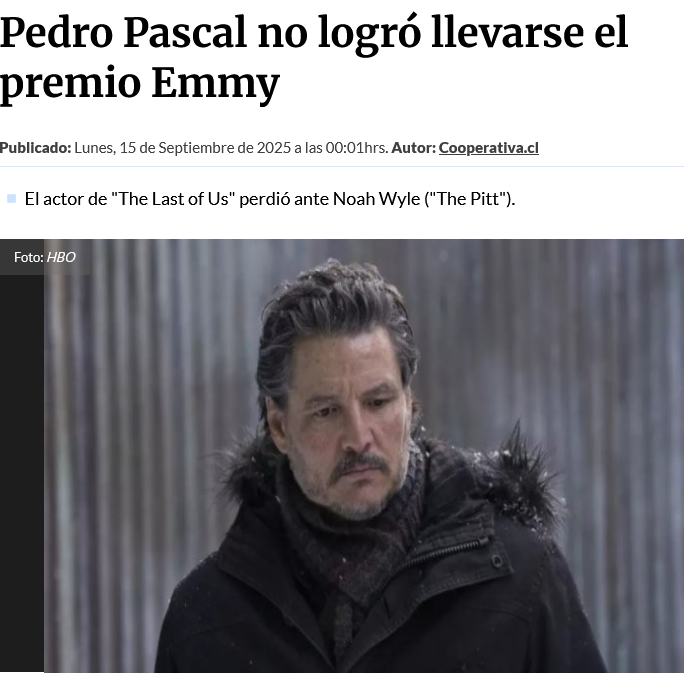 Pedro Pascal no logró llevarse el premio Emmy malditos