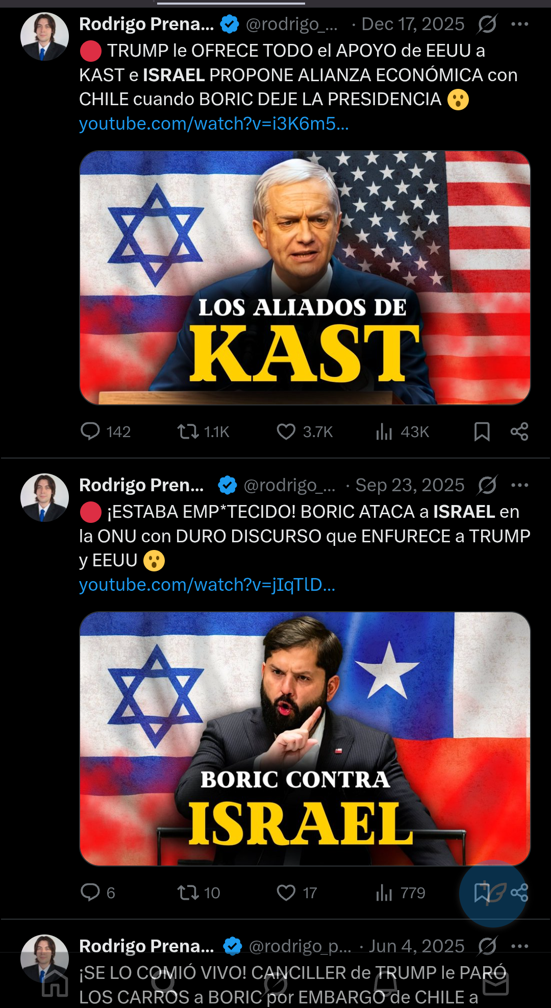 No olvidemos que como consecuencia de las decisiones de Boric Israel cortó el apoyo militar y logístico a Chile, y decidió entregárselo a Argentina